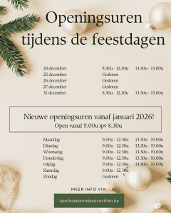 Als we bezig zijn met klanten in de apotheek, laat dan een bericht achter of probeer het later opnieuw. We informeren je graag over de beschikbaarheid en ophaalmogelijkheden.