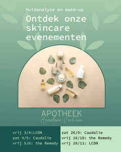 Bij Apotheek Anneleen Vochten in Rotselaar bieden we een zorgvuldig samengesteld assortiment van hoogwaardige cosmeticaproducten. Of u nu op zoek bent naar effectieve huidverzorging of luxueuze make-up, wij hebben alles wat u nodig hebt om uw natuurlijke schoonheid te accentueren. Merken zoals Caudalie en La Roche-Posay staan garant voor kwaliteit en effectiviteit, zodat u altijd het beste uit uw huid haalt.